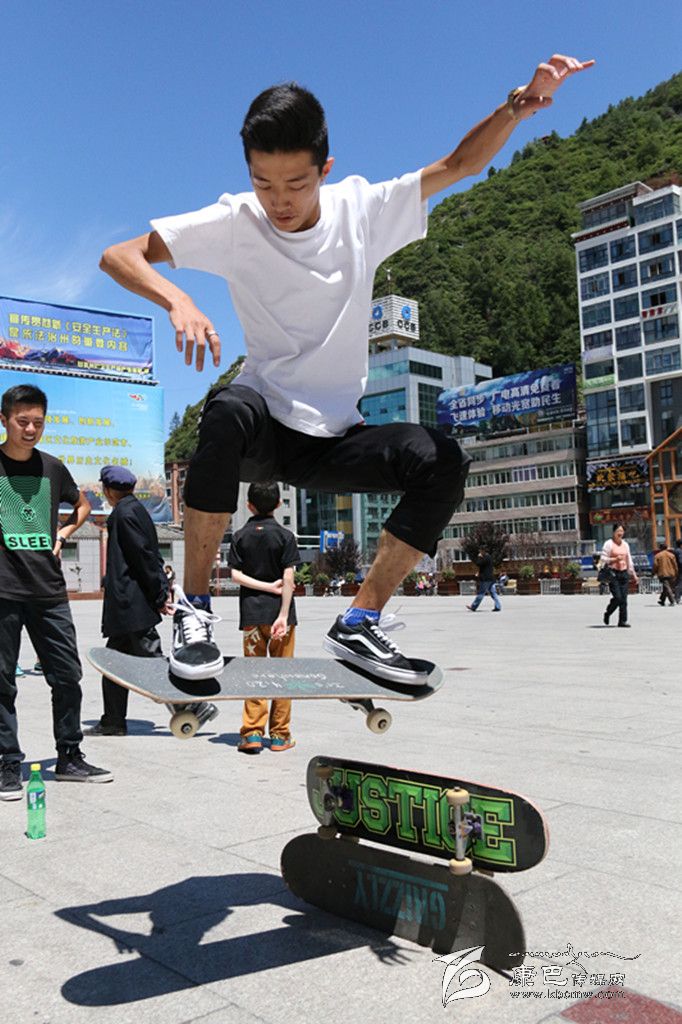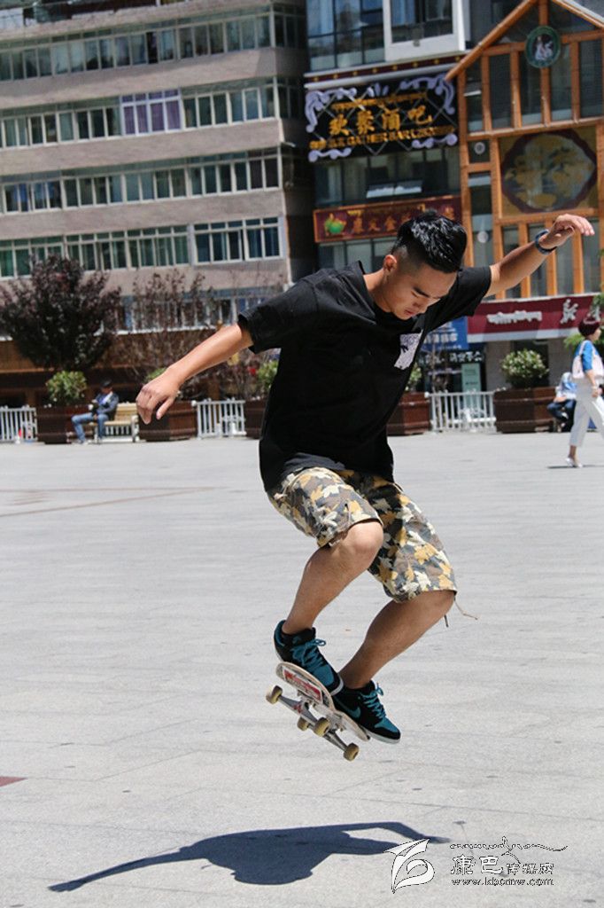 提到極限運動,你首先會想到什么?直排輪、空中沖浪、跑酷、攀巖……它們中很多都由滑板延伸而來,因此滑板又被稱為極限運動的“鼻祖”。在康定,有這么一群年輕人,他們每到暑假,每天都會在情歌廣場集合,踏上滑板、踩上輪滑挑戰(zhàn)一個個“不可能的任務”。一身肥大的T恤牛仔,夸張的金屬耳釘、項鏈、手鏈、戒指,和著動感十足的Hip-Hop音樂,踩著滑板在障礙之間穿梭,間或穿插幾個高難度花式動作,引得觀眾此起彼伏地喝彩尖叫……這是很多人印象中滑板、滑輪小子的形象。但當賀淼、謝明洋、陳凱他們出現(xiàn)在記者面前時,簡單的裝束真有點讓記者意外。他們的身上幾乎不見任何首飾,普通的T恤加瘦版牛仔褲,還有頭上簡單的鴨嘴帽, “Hip-Hop” 前衛(wèi)的影子并不明顯。