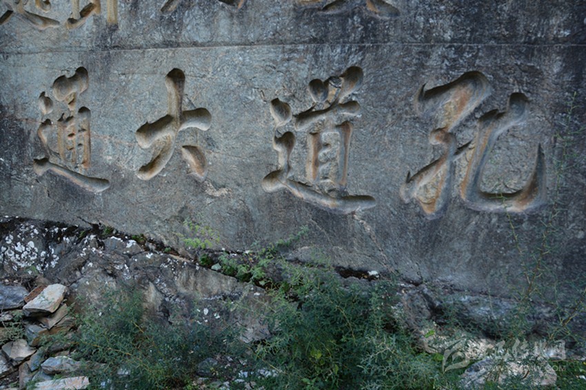 《孔道大通》的右邊的幾行小字為吳嘉謨撰呂秀紳書寫的《筑路記》。