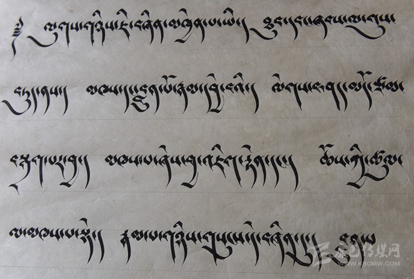 談到藏文書法作品,昂旺曲批喜歡用諸如“淳樸、干凈、善良”的字眼形容藏文書法作品的風(fēng)格。“一個字就是一個人,字有肉也有骨頭。”這是昂旺曲批對“德珍派”書法的理解,在昂旺曲批眼中,藏文字都是有生命的,需要寧心靜氣方能通過手中的筆尖,彼此呼應(yīng)。