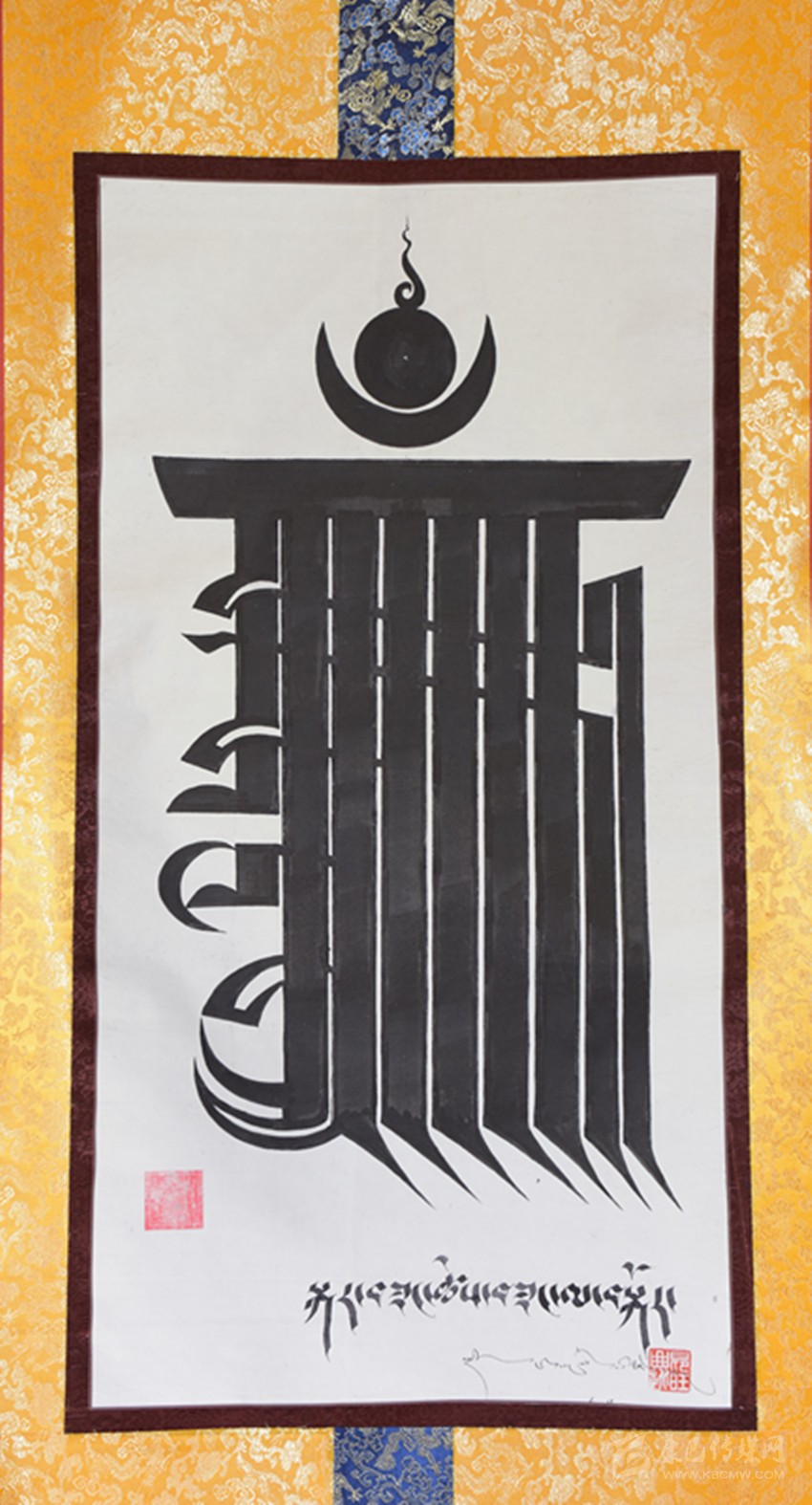 “創(chuàng)新也是為了讓更多的年輕人能夠拉近與藏文書法之間的距離,讓他們更好地理解文化傳統(tǒng)中的精髓?!卑和堰@一想法也踐行到了唐卡畫的創(chuàng)作中。他正在創(chuàng)作上百幅不上色的唐卡作品,配上藏文書法,以期通過簡潔之美,讓更多年青人關(guān)注藏文書法和唐卡藝術(shù)。