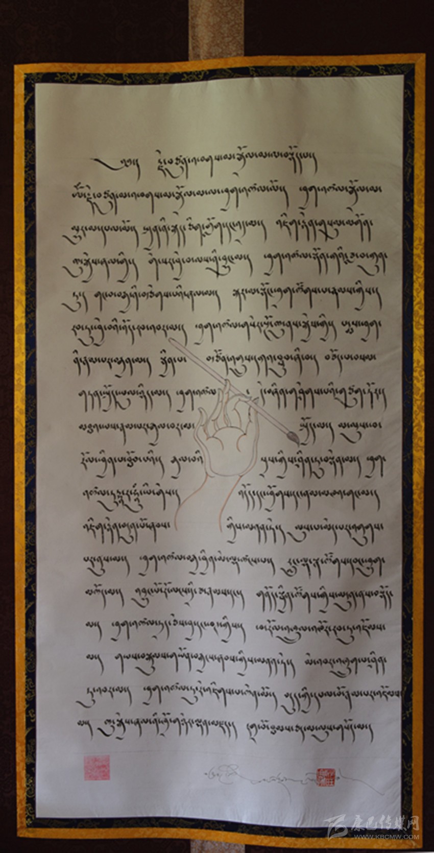 他引用一句諺語來表達(dá):“水那邊的干牛糞沒撿到,水這邊的濕牛糞也沒有見撿到。” 在昂旺曲批看來,靜心是藏文化非常重要的精神傳統(tǒng),這也是藏文書法和唐卡立身的根基。而昂旺曲批記住這句諺語,無非是隨時提醒和勉勵自己。