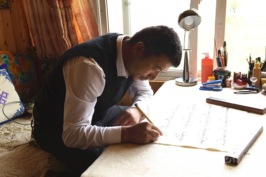 “德珍書法原本就是集歷史上藏文書法大師作品精華而成?!边@些年,昂旺曲批呆在理塘,潛心研究當(dāng)代各個藏文流派名家的書法作品,同時和內(nèi)地的漢字書法名家保持著聯(lián)系。他希望自己沿著“集眾家所長,兼收并蓄”的精神傳統(tǒng),把“德珍派”藏文書法的傳統(tǒng)發(fā)揚(yáng)廣大,同時能有所創(chuàng)新。