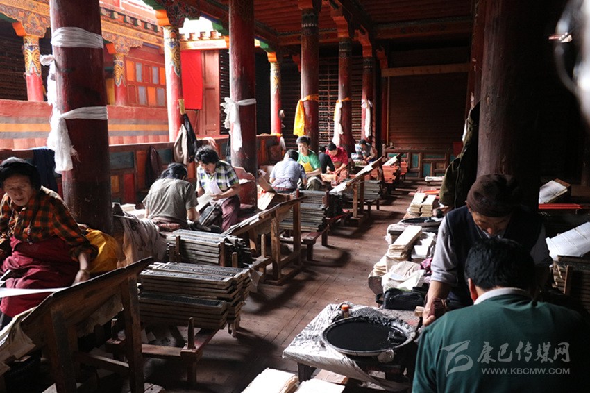 公元1730年2月3日,正式在倫珠頂開始進(jìn)行校對和雕刻工作。為了提高印版的質(zhì)量,土司規(guī)定實(shí)行三級(jí)審校制度,即書法家們負(fù)責(zé)對寫好的版文進(jìn)行兩校,以便及時(shí)修改錯(cuò)漏。然后經(jīng)編審師們復(fù)審和終審后,方可交刻工雕刻??掏旰?,編審師們在清樣上還要進(jìn)行三校。版面改動(dòng)較多的進(jìn)行重刻,改動(dòng)較少的進(jìn)行補(bǔ)刻。規(guī)定的校次不準(zhǔn)任意減少或改動(dòng)。雕刻工作由噶瑪班珠和次白總負(fù)責(zé)。經(jīng)過60多名書寫員、10名編審師、400余名刻工以及100多名雜工的艱苦勞動(dòng),浩繁的《甘珠爾》刻版工程于在公元1734年完成。印版所用經(jīng)費(fèi),折成茶塊共計(jì)7622包(每包約20公斤)。