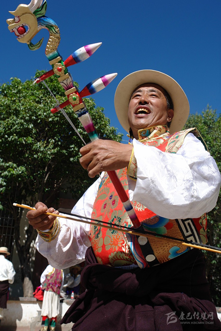 八歲時,就從外婆那里學會了拉“胡幾”,拉得不好,鄰居們笑:“咿咿呀呀的,像驢子在叫”。人們在田間地角跳弦子時,他夾在圈子里“臊堂子”調(diào)皮,后來便跟著大人跳,跳著跳著就學會了。有些動作不標準,外婆和母親就會笑著糾正。1972年,縣上的“毛澤東思想文藝宣傳隊”選中了剛滿十四歲的他,在“文革”中后期鋪天蓋地的運動中,他們上山下鄉(xiāng)進軍營送文化,弦子舞技得到強化,藏二胡就是在這期間越拉越好的。那時候糧食還沒有過關(guān),公社分配的工分又重,家里的日子過得很艱難。經(jīng)常跟宣傳隊唱唱跳跳,可以不做那些繁重的農(nóng)活了,他還暗地里偷偷慶幸過?!拔母铩苯Y(jié)束后,縣上成立了業(yè)余弦子隊,他自然也在其中,這時,他已經(jīng)能記住二百多首弦子詞曲了。西藏恢復(fù)雪頓節(jié)那年,應(yīng)該是1986年吧,他們又跳到了圣地拉薩,受到了西藏各地官員和群眾的歡迎。客居拉薩的巴塘人在雪頓節(jié)盛典上看到巴塘弦子,流下了激動的淚水,很多人過來跟他們“打招呼”,問候家鄉(xiāng)人。跳弦子五十多年,去拉薩應(yīng)該是最難忘的事情了。“阿幾拉沖!說拉薩道拉薩,拉薩建在海面上。”這是小時候外婆教他唱的。和所有的藏族一樣,他從小就向往那塊圣地。八十年代交通極其不方便,去成都都要走整整四天,去拉薩多難啊,所以村里人都很羨慕他們弦子隊。他還記得,在向布達拉宮虔身朝拜的那一刻,他流下了感動和幸福的淚水。