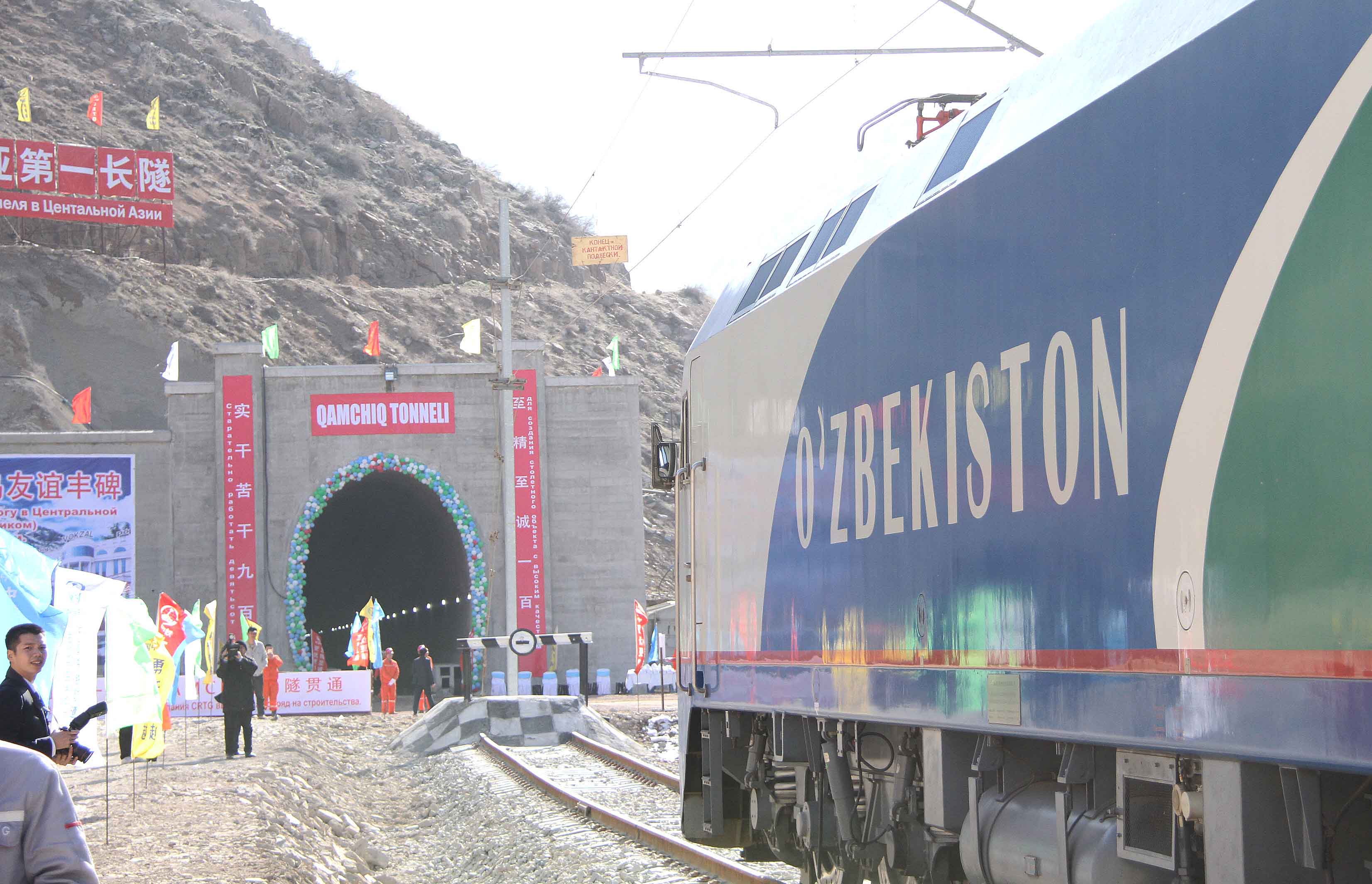 △ 2016年2月27日,一列專列停在烏茲別克斯坦安格連至琶布鐵路甘姆奇克隧道進(jìn)口。甘姆奇克隧道是中吉烏鐵路的重要一環(huán),對促進(jìn)烏茲別克斯坦經(jīng)濟(jì)社會發(fā)展和共建“一帶一路”倡議的實(shí)施具有重大意義。