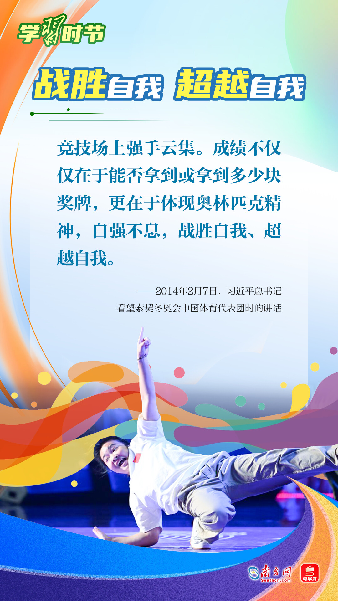 “我們不以勝負(fù)論英雄,同時(shí)英雄就要敢于爭(zhēng)先、敢于爭(zhēng)第一。”習(xí)近平總書(shū)記曾在不同場(chǎng)合論述奧林匹克精神,深刻闡明了勝與負(fù)、成與敗的辯證關(guān)系,對(duì)奧林匹克“更快、更高、更強(qiáng)——更團(tuán)結(jié)”的格言進(jìn)行詮釋。讓我們一同學(xué)習(xí)習(xí)近平總書(shū)記對(duì)奧林匹克精神的重要論述,心懷夢(mèng)想、奮勇拼搏,攜手走向美好明天。