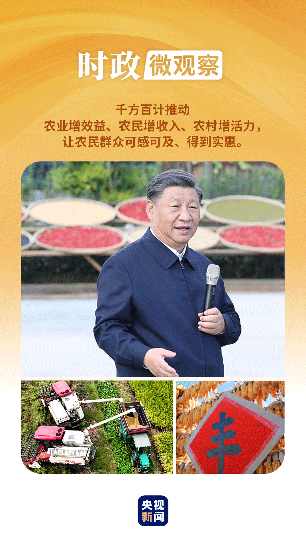 在第七個(gè)“中國(guó)農(nóng)民豐收節(jié)”到來(lái)之際,習(xí)近平總書(shū)記代表黨中央,向全國(guó)廣大農(nóng)民和工作在“三農(nóng)”戰(zhàn)線(xiàn)上的同志們致以節(jié)日祝賀和誠(chéng)摯問(wèn)候,對(duì)于堅(jiān)持不懈夯實(shí)農(nóng)業(yè)基礎(chǔ),推進(jìn)鄉(xiāng)村全面振興提出殷切期望和要求——