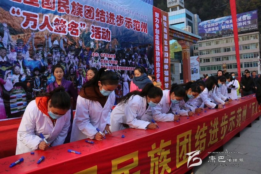 我們的家鄉(xiāng)更好更快地發(fā)展。”11月20日,在我州康定情歌廣場(chǎng)舉行創(chuàng)建全國(guó)民族團(tuán)結(jié)進(jìn)步示范州“萬人簽名”活動(dòng)現(xiàn)場(chǎng),來自省藏校的學(xué)生代表李康珠這樣說道。