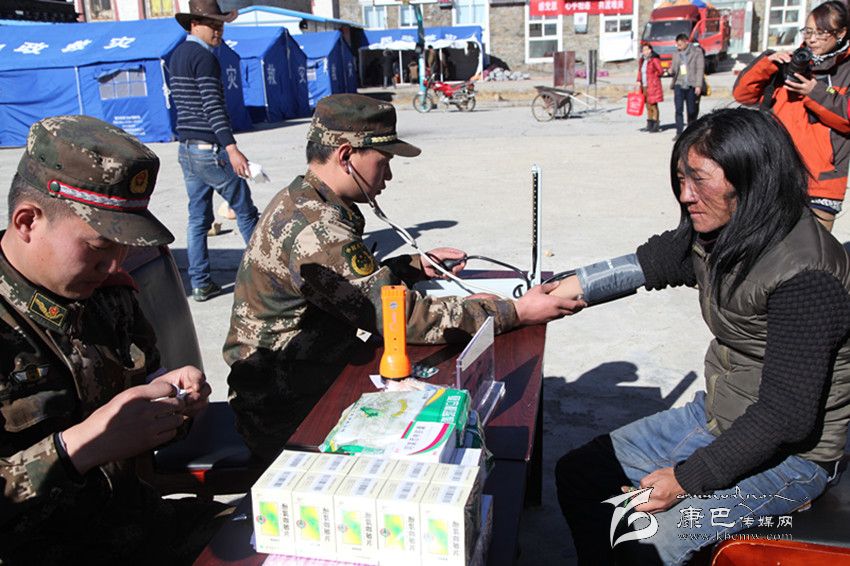 為災(zāi)區(qū)群眾檢查身體。