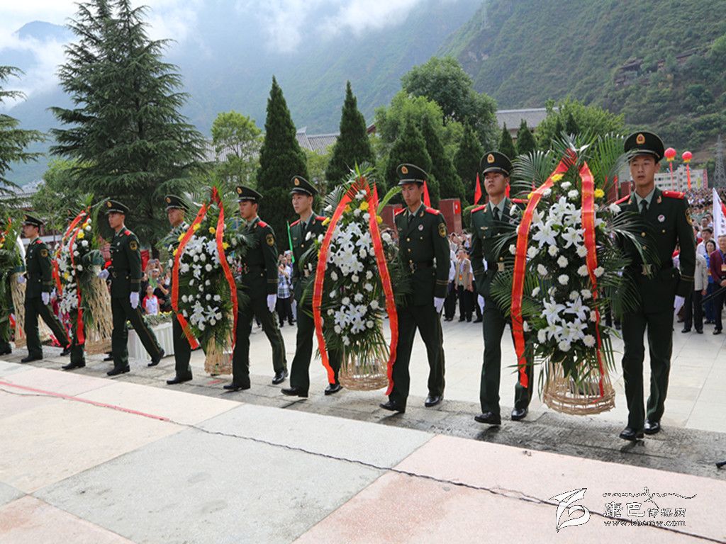 隨后,參加活動(dòng)的來(lái)賓向紅軍飛奪瀘定橋紀(jì)念碑敬獻(xiàn)鮮花。