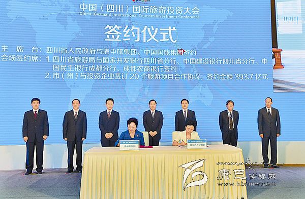簽約儀式上,省政府與港中旅集團(tuán)、中國(guó)國(guó)旅集團(tuán)分別簽訂促進(jìn)旅游業(yè)發(fā)展戰(zhàn)略合作協(xié)議;省旅游局與國(guó)家開(kāi)發(fā)銀行四川省分行、中國(guó)建設(shè)銀行四川省分行、中國(guó)民生銀行成都分行、成都農(nóng)商銀行,分別簽訂支持旅游業(yè)發(fā)展戰(zhàn)略合作協(xié)議;各市(州)與相關(guān)投資企業(yè)簽訂20個(gè)旅游項(xiàng)目合作協(xié)議,簽約金額393.7億元。