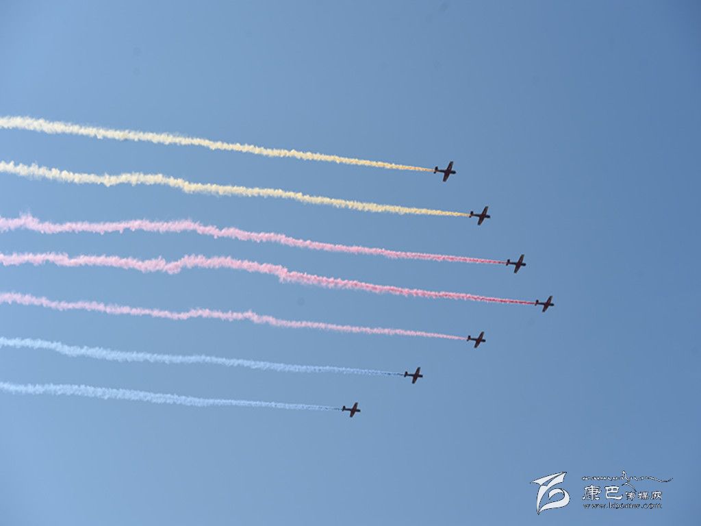 7道彩煙、8道彩煙……絢麗濃艷的彩煙帶成為空中的“吸睛”亮點(diǎn)。