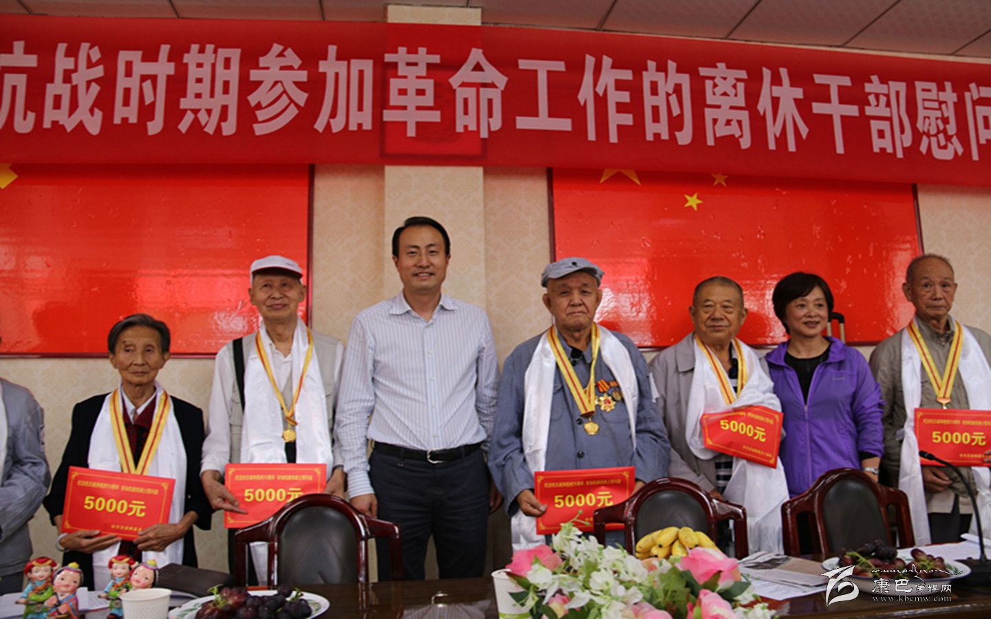 9月2日,甘孜州抗戰(zhàn)時(shí)期參加革命工作的離休干部慰問大會(huì)在州屬雅安干休所舉行。州委常委、組織部長(zhǎng)趙波出席會(huì)議并為我州1945年9月前參加過抗戰(zhàn)的7位老戰(zhàn)士代表頒發(fā)了中國(guó)人民抗日戰(zhàn)爭(zhēng)暨世界反法西斯戰(zhàn)爭(zhēng)勝利70周年紀(jì)念章,同時(shí)還送上了慰問金。