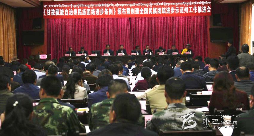 本網(wǎng)訊(記者 楊杰 文/圖)9月2日下午,我州召開(kāi)《甘孜藏族自治州民族團(tuán)結(jié)進(jìn)步條例》頒布暨創(chuàng)建全國(guó)民族團(tuán)結(jié)進(jìn)步示范州工作推進(jìn)會(huì),主要任務(wù)是貫徹落實(shí)8月1日頒布實(shí)施的《甘孜藏族自治州民族團(tuán)結(jié)進(jìn)步條例》,表彰命名全州第三批民族團(tuán)結(jié)進(jìn)步示范單位,總結(jié)交流示范州創(chuàng)建工作經(jīng)驗(yàn),安排部署今后一個(gè)時(shí)期的民族團(tuán)結(jié)進(jìn)步示范州創(chuàng)建工作。