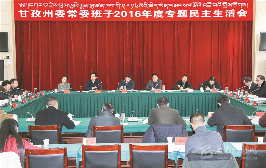 本網(wǎng)訊(記者 楊杰 文/圖)11日下午,州委常委班子召開2016年度民主生活會。會議深入學(xué)習(xí)貫徹黨的十八屆六中全會、省委十屆九次全會,圍繞“兩學(xué)一做”學(xué)習(xí)教育,重點(diǎn)對照中央《關(guān)于新形勢下黨內(nèi)政治生活的若干準(zhǔn)則》《中國共產(chǎn)黨黨內(nèi)監(jiān)督條例》和省委《關(guān)于加強(qiáng)和規(guī)范黨內(nèi)政治生活嚴(yán)格黨內(nèi)監(jiān)督鞏固發(fā)展良好政治生態(tài)的決定》,結(jié)合實(shí)際進(jìn)行黨性分析,開展批評和自我批評。會議旨在讓州委常委班子成員從思想、組織、作風(fēng)、紀(jì)律等方面查找存在的突出問題,逐一抓好整改落實(shí),切實(shí)從思想和靈魂深處經(jīng)受一次深刻的洗禮和教育,以更加優(yōu)良的作風(fēng)、更加扎實(shí)的工作,展現(xiàn)新一屆班子的新形象,為決戰(zhàn)脫貧攻堅(jiān)、決勝全面小康,建設(shè)美麗生態(tài)和諧小康甘孜奠定良好的政治基礎(chǔ)。