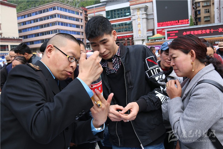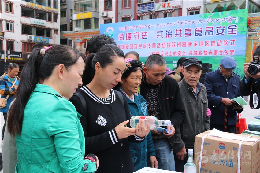 啟動儀式后,在康定情歌廣場上,來自州食安委和康定市食安相關(guān)成員單位通過現(xiàn)場咨詢、板塊展示、張貼海報標(biāo)語、發(fā)放資料等方式,為前來關(guān)注食品安全的市民們發(fā)放和講解相關(guān)問題。在現(xiàn)場,記者看到廣大市民關(guān)注最多的是假冒偽劣食品,對于如何識別,現(xiàn)場工作人員都一一進(jìn)行了耐心細(xì)致地講解。