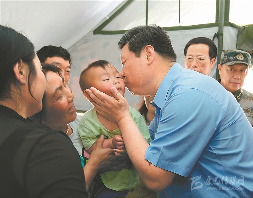 2013年5月21日,習近平總書記來到蘆山,在震后安置群眾的蘆山縣體育館,他捧著駱俊誠的小臉蛋輕輕親吻的畫面,感動了無數人。