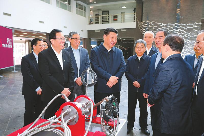 近年來,北京大學(xué)培養(yǎng)和匯聚了一批具有世界領(lǐng)先水平的科學(xué)家、科技領(lǐng)軍人才和創(chuàng)新團(tuán)隊,科研綜合實力、原始創(chuàng)新能力顯著增強(qiáng)。在金光生命科學(xué)大樓一層大廳,展示了近年來北京大學(xué)在理科、工科、醫(yī)科等領(lǐng)域的科研成果。習(xí)近平認(rèn)真聽取關(guān)于學(xué)校學(xué)科建設(shè)、人才隊伍建設(shè)、科研創(chuàng)新能力提升等情況介紹,并仔細(xì)察看新一代干細(xì)胞技術(shù)、碳芯片技術(shù)、微型雙光子顯微成像系統(tǒng)等科研裝置和實物模型。習(xí)近平對大家說,看了你們的成果展示,我為你們感到驕傲。創(chuàng)新是引領(lǐng)發(fā)展的第一動力,是國家綜合國力和核心競爭力的最關(guān)鍵因素。重大科技創(chuàng)新成果是國之重器、國之利器,必須牢牢掌握在自己手上,必須依靠自力更生、自主創(chuàng)新。在這個問題上,我們一定要保持清醒。要繼續(xù)深化科技體制改革,把人、財、物更多向科技創(chuàng)新一線傾斜,努力在關(guān)鍵共性技術(shù)、前沿引領(lǐng)技術(shù)、現(xiàn)代工程技術(shù)、顛覆性技術(shù)創(chuàng)新上取得更大突破,搶占科技創(chuàng)新制高點(diǎn)。高校是科技創(chuàng)新體系的重要組成部分,高??蒲腥藛T是我國科技創(chuàng)新的重要隊伍。要加強(qiáng)學(xué)科之間的協(xié)同創(chuàng)新,加強(qiáng)對交叉學(xué)科群和科技攻關(guān)團(tuán)隊的支持,培養(yǎng)造就更多具有國際水平的科技人才和創(chuàng)新團(tuán)隊。