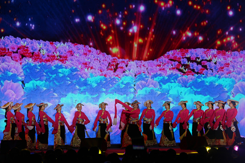 晚會(huì)在粗獷豪放、極具地方特色的舞蹈《歡歌踏舞》中拉開了序幕。中國曲協(xié)副主席、巴蜀笑星叮當(dāng)?shù)闹C劇《麻將人生》,更是展現(xiàn)出了高超的演繹技巧,詼諧的語言頻戳笑點(diǎn),夸張的表情恰到好處,現(xiàn)場(chǎng)高潮迭起,觀眾笑聲連連;女高音歌唱家韓延文帶來的歌曲《那就是我》《我的祖國》,唱出了人民與祖國的深厚情誼,令人眼前一亮;柴京云、柴京海表演的《婆媳之間》,融合了相聲、小品等多種表演形式,表達(dá)了構(gòu)建和諧社會(huì)“家和才能萬事興”的思想主題;劉穎和張浩楠表演的相聲《說唱雙截棍》、格薩爾說唱《賽馬》、女生獨(dú)唱《木雅山歌》等一個(gè)個(gè)精彩的節(jié)目贏得了現(xiàn)場(chǎng)觀眾熱烈掌聲和歡笑聲,一次又一次把演出推向了高潮。