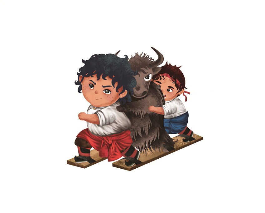 據(jù)悉,該卡通形象由康巴文化研究院設(shè)計,最早出現(xiàn)在去年的環(huán)貢嘎山百公里越野挑戰(zhàn)賽上,在各國越野高手云集的賽場上,一名身著傳統(tǒng)服飾的小藏娃牽著牦牛奔跑的形象令人過目不忘。而此次省民運會將繼續(xù)沿用“小藏娃和牦牛洛洛的形象”,康巴文化研究院組織專人設(shè)計,按照既生動可愛又準(zhǔn)確把握運動項目特征的要求,將此次運動會中的蹴球、陀螺、射弩、高腳競速、板鞋競速、押加、珍珠球、民族式摔跤等8個競賽項目以卡通形象展現(xiàn)。