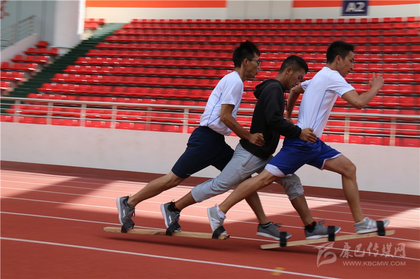 記者走出青少年活動(dòng)中心,來到了北門體育場內(nèi)?!案骶透魑?,預(yù)備,跑!”“噔噔噔……”只見6名運(yùn)動(dòng)員踩著一個(gè)竹竿向前奮力跑去。
