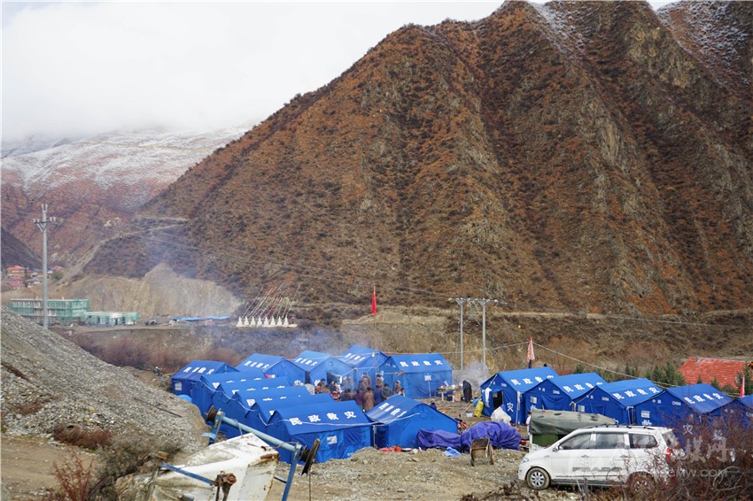 11月17日晚七點(diǎn),在四川甘孜藏族自治州巴塘縣竹巴龍鄉(xiāng)納扎西村安置點(diǎn),明月繁星下的藍(lán)色救災(zāi)帳篷里燈影晃動(dòng)。10歲的小扎西顧不上還在收拾碗筷的阿媽,迫不及待地沖出溫暖的帳篷,和小伙伴們盡情地在投影儀制造的燈影下打鬧,這里是全村人的樂園。