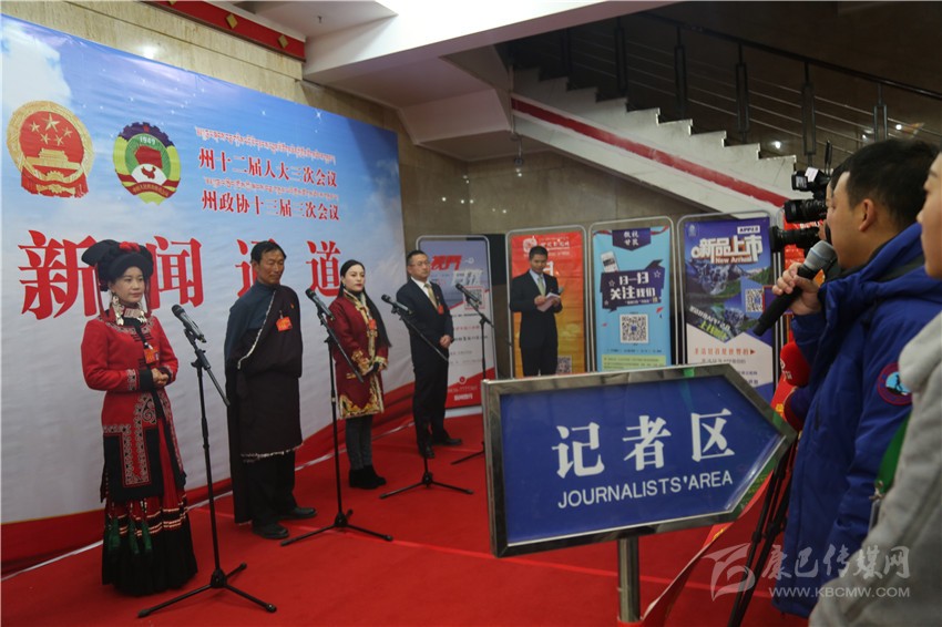 昨(7)日上午8點,康定劇場前廳,當4名州人大代表走到麥克風前時,現(xiàn)場閃光燈亮成一片。這是2019年州“兩會”首場“代表通道”現(xiàn)場。4名州人大代表就老百姓關心的“畜牧區(qū)如何脫貧攻堅、基層代表如何帶領群眾奔康、民營企業(yè)如何突破發(fā)展瓶頸以及青年代表如何履職”等作出回應。四川日報、四川經(jīng)濟日報、康巴衛(wèi)視、四川新聞網(wǎng)、甘孜日報、甘孜州廣播電視臺、甘孜新聞網(wǎng)、康定市電視臺等媒體記者在現(xiàn)場采訪。