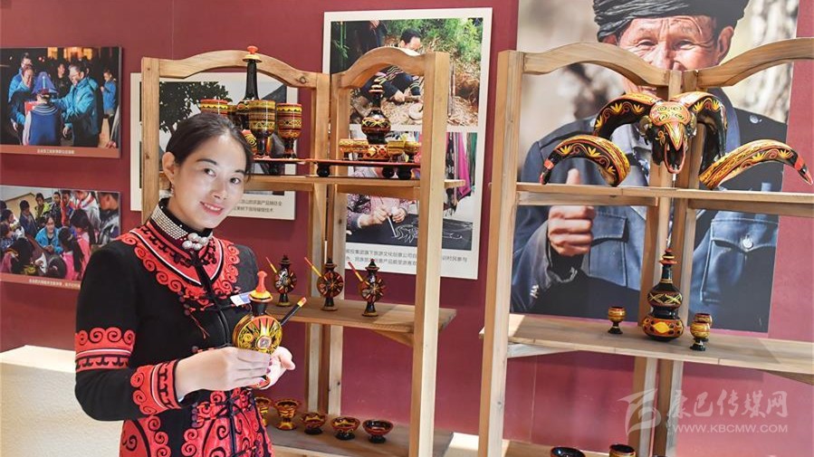 9月7日,在景區(qū)工作的彝海村村民馬嘿補吉莫展示彝族特色手工藝品。新華社記者 孫瑞博