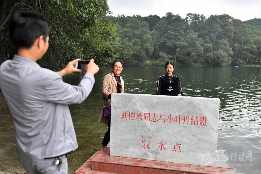 9月7日,游客在景區(qū)內(nèi)彝海結(jié)盟取水點拍照留念。新華社記者 孫瑞博