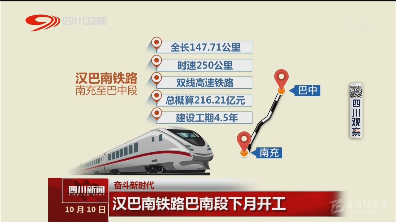 近日,省發(fā)改委對新建漢巴南鐵路南充至巴中段初步設(shè)計進(jìn)行了批復(fù)。項目正線全長147.71公里,時速250公里,為雙線高速鐵路,總概算為216.21億元,建設(shè)工期4年半,由省鐵投集團公司和南充市、巴中市人民政府共同籌資建設(shè)。項目預(yù)計11月底全線開工建設(shè),到2024年建成通車后,巴中至南充最短運行時間約為35分鐘,待成南達(dá)萬鐵路建成投運后,巴中至成都運行時間可縮短至75分鐘左右。