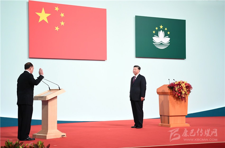 慶祝澳門回歸祖國20周年大會(huì)暨澳門特別行政區(qū)第五屆政府就職典禮20日上午在澳門東亞運(yùn)動(dòng)會(huì)體育館隆重舉行。中共中央總書記、國家主席、中央軍委主席習(xí)近平出席并發(fā)表重要講話。他指出,澳門回歸祖國20年來,澳門特別行政區(qū)政府和社會(huì)各界人士同心協(xié)力,開創(chuàng)了澳門歷史上最好的發(fā)展局面,譜寫了具有澳門特色的“一國兩制”成功實(shí)踐的華彩篇章。他希望澳門特別行政區(qū)新一屆政府和社會(huì)各界人士站高望遠(yuǎn)、居安思危,守正創(chuàng)新、務(wù)實(shí)有為,在已有成就的基礎(chǔ)上推動(dòng)澳門特別行政區(qū)各項(xiàng)建設(shè)事業(yè)躍上新臺(tái)階。