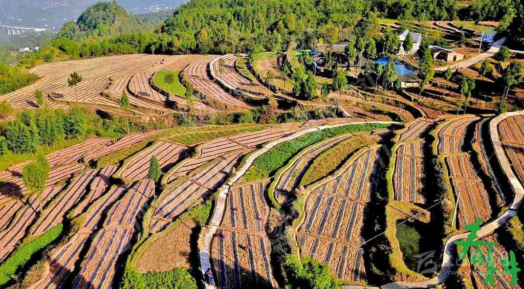 南江縣楊壩鎮(zhèn)組織的勞動力在柏林村新開墾的茶梯地開溝理廂準(zhǔn)備栽植茶苗。
