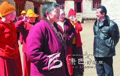 在雅江縣委、縣人大常委會主要領(lǐng)導(dǎo)及統(tǒng)戰(zhàn)、宗教部門的陪同下,李康來到距縣城90多公里的雅江縣紅龍鄉(xiāng)158k覺姆寺,同寺管會成員和部分僧尼進(jìn)行座談。他詳細(xì)了解寺廟的基本情況,仔細(xì)詢問僧尼的生產(chǎn)生活和寺廟佛事活動開展情況,認(rèn)真傾聽僧尼的反映和訴求,對僧尼提出的困難和問題詳細(xì)記錄,認(rèn)真答復(fù),耐心細(xì)致地講解宣傳黨的民族宗教和惠寺惠僧政策。座談會上,李康主任簡短的開場白很快拉近了大家的距離,他說,這次專門到寺廟的目的就是看望大家,建立聯(lián)系,了解情況,收集問題,希望大家暢所欲言,互相溝通,加強(qiáng)交流,增進(jìn)了解,共同推進(jìn)寺廟的健康有序發(fā)展。當(dāng)他了解到該寺的水、電問題在縣委、政府的關(guān)心重視下,今年即將得到解決時(shí),他說,州、縣黨委、政府歷來十分關(guān)心寺廟的基礎(chǔ)設(shè)施建設(shè)和廣大僧尼的生產(chǎn)生活、健康醫(yī)療等問題,寺廟的水電、道路、通信等基礎(chǔ)設(shè)施始終得到了黨委、政府的關(guān)心支持,僧尼的醫(yī)保、養(yǎng)老和最低生活保障等生活保障措施正在全州寺廟全面覆蓋。對寺廟的其他困難和問題,州、縣將積極協(xié)調(diào),盡快解決。他強(qiáng)調(diào)指出,158k覺姆寺近年來通過縣委、政府綜合施策,強(qiáng)化教育,規(guī)范管理,寺廟整體情況良好,步入了依法管理的良性軌道。他講到,我們黨的民族宗教政策是長期的、一貫的,寺廟作為基本社會單元,僧尼作為普通公民和基本群眾,要自覺接受當(dāng)?shù)攸h委、政府依法管理,維護(hù)祖國統(tǒng)一、民族團(tuán)結(jié)和法制尊嚴(yán),推動宗教與社會主義社會相適應(yīng),與現(xiàn)代文明進(jìn)程相協(xié)調(diào),積極投入全州發(fā)展中來,共同建設(shè)好我們的和諧幸福家園。任何寺廟只要服從當(dāng)?shù)攸h委、政府的管理,認(rèn)真貫徹落實(shí)好藏傳佛教的各項(xiàng)管理規(guī)定,真正發(fā)揮好宗教的正面積極作用,寺廟才會得到黨委、政府更多的關(guān)心支持,才會得到更好的健康發(fā)展。他希望158k覺姆寺要依法加強(qiáng)宗教事務(wù)的管理,深入貫徹落實(shí)《甘孜州藏傳佛教事務(wù)條例實(shí)施細(xì)則》,促進(jìn)依法治寺、規(guī)范管寺,為維護(hù)正常宗教秩序、服務(wù)經(jīng)濟(jì)社會發(fā)展、促進(jìn)社會和諧穩(wěn)定做出積極貢獻(xiàn)。