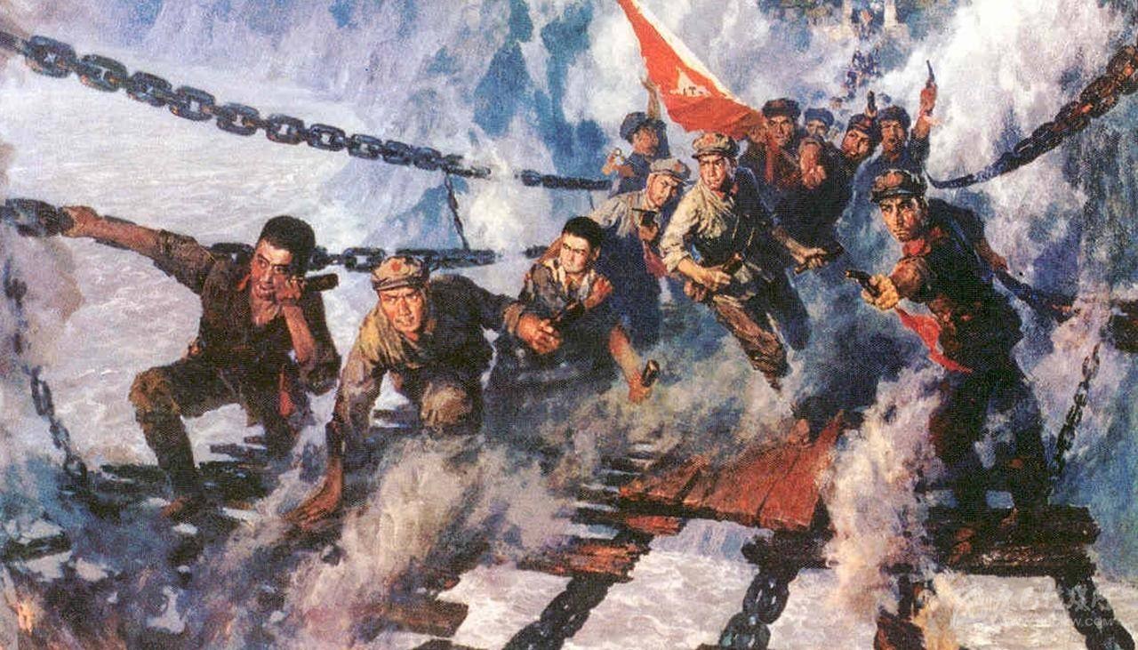 油畫《飛奪瀘定橋》,現(xiàn)藏于中國人民革命軍事博物館。