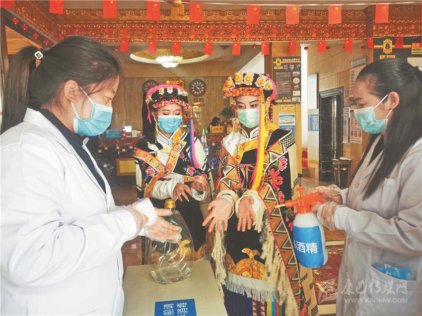 巴塘、九龍、得榮、理塘、甘孜、新龍、德格、白玉等各縣演出隊也十分重視防疫工作。每個演出隊均配齊了酒精、口罩、體溫槍等防疫用品,并在到達康定前,就對各自演出隊開展了防疫宣傳、知識普及等工作。