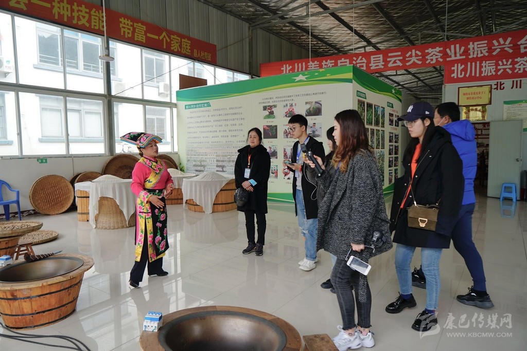 吳紅向記者介紹羌族古茶生產(chǎn)流程