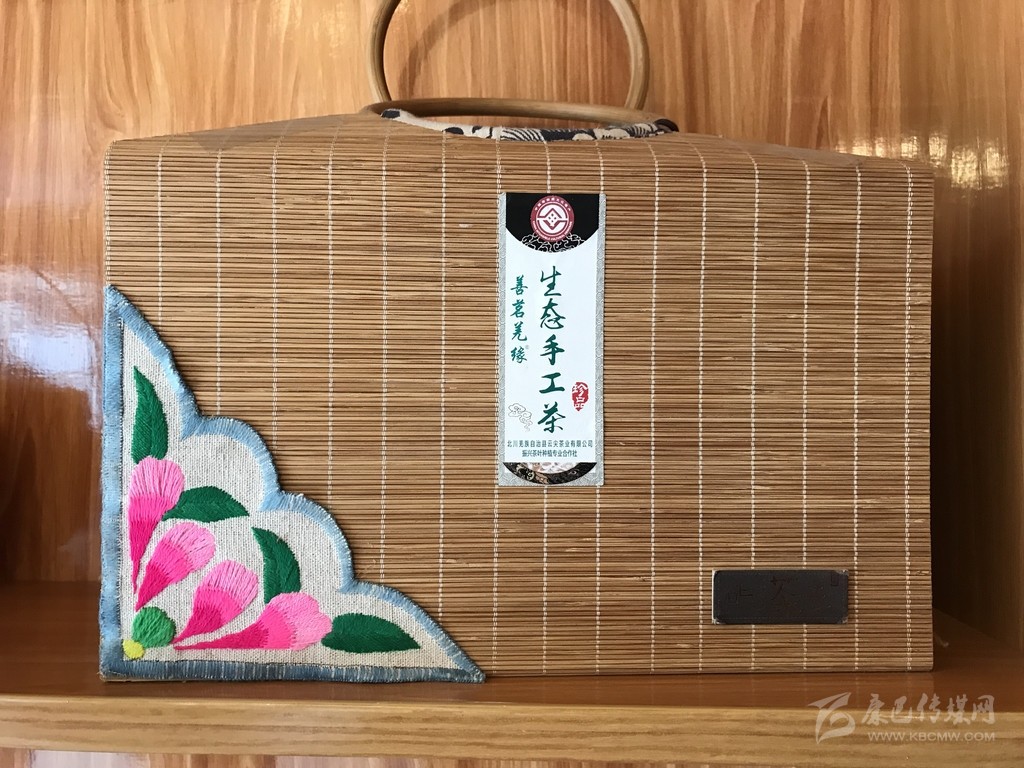 茶盒上的羌繡裝飾