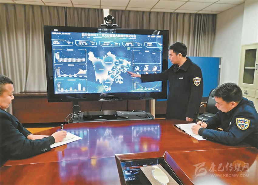 省勞動(dòng)保障監(jiān)察總隊(duì)工作人員通過(guò)“四川省農(nóng)民工工資支付監(jiān)管大數(shù)據(jù)可視化平臺(tái)”,對(duì)全省建筑施工項(xiàng)目工資支付情況進(jìn)行分析。