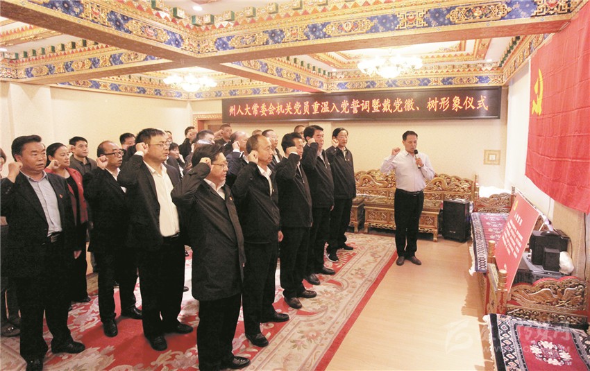 州人大常委會(huì)機(jī)關(guān)黨員重溫入黨誓詞。