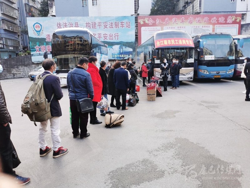 記者了解到,截至20日,合江返崗農(nóng)民工人數(shù)達(dá)3553人,為迎接農(nóng)民工返崗高峰期的到來,全縣各部門已作好準(zhǔn)備,將根據(jù)返崗農(nóng)民工的愿望和需求,持續(xù)開展返崗專車服務(wù),每天還將有從合江發(fā)往全國各地的專車,助力農(nóng)民工實現(xiàn)安全返崗務(wù)工。