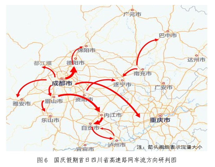 預計車流量主要圍繞成都等中心城市呈放射狀分布。節(jié)日期間,成都市周邊各主線站以及連通主線站的環(huán)線高速車流量最為密集,假期出行主要方向集中在成都往德陽、眉山往內(nèi)江、內(nèi)江往自貢、成都往雅安、成都往都江堰以及成都往重慶方向。