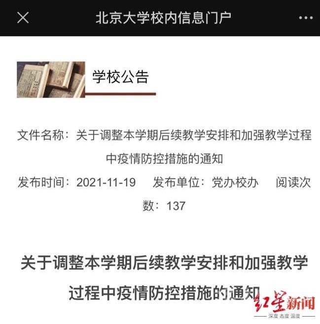 除了就地過年的倡議,紅星新聞記者也發(fā)現(xiàn),不少高校也開始了提前放假。北京部分高校發(fā)布通知,調整2021至2022學年秋季學期期末考試及寒假安排。包括北京大學、中國人民大學、北京物資學院等高校均發(fā)出了提前放寒假安排。
