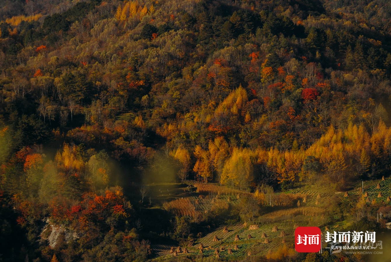 冬天到了,一場大雪之后,山上層林盡染。絳紅色的青皮樹,褐紅色的山杉,在大雪覆蓋下,一層層向更高的山峰蔓延。