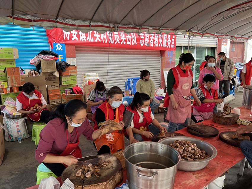 在得妥鎮(zhèn)北頭村的路旁,來自瀘定縣冷磧鎮(zhèn)桐子林村的李星芳和其他志愿者一起忙著切菜煮飯。她告訴記者,地震發(fā)生后,我主動報(bào)名加入志愿者團(tuán)隊(duì)。“我們這個(gè)點(diǎn)上除了政府發(fā)放的物資,還有很多附近村民和好心人送來的菜肉和水果,大家都在用自己的行動出一份力。”正在忙著切菜的志愿者洪衛(wèi)群說。就在記者采訪時(shí),在北頭村開飯館的易姝宏一家送來了鹵菜、排骨和新鮮蔬菜,記賬員茍有成忙著清點(diǎn)數(shù)量并記錄在冊?!暗卣鸷螅謰尠涯赀~的奶奶送到瀘定縣城孃孃家,我也向單位請了假,今天我們一起趕回來在這里幫忙”。