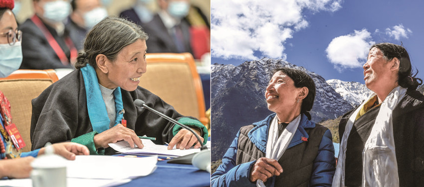 拼版照片:左圖為黨的二十大代表卓嘎在西藏代表團討論中發(fā)言;右圖為卓嘎(左)、央宗姐妹倆在一起。 西藏山南市隆子縣玉麥鄉(xiāng)玉麥村村民卓嘎表示,要繼續(xù)當好神圣國土守護者。玉麥鄉(xiāng)地處祖國西南邊陲。上世紀60年代以來很長一段時間,僅有父親桑杰曲巴和女兒卓嘎、央宗姐妹一戶人家,被外界稱作“三人鄉(xiāng)”。他們始終秉持“家是玉麥,國是中國,放牧守邊是職責”的堅定信念,幾十年如一日,守護著祖國的領土,譜寫了愛國守邊的動人故事和時代贊歌。 新華社 發(fā)