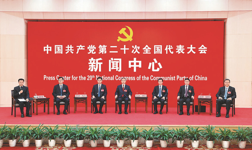 10月20日,中國共產(chǎn)黨第二十次全國代表大會新聞中心舉行集體采訪。 新華社 發(fā)