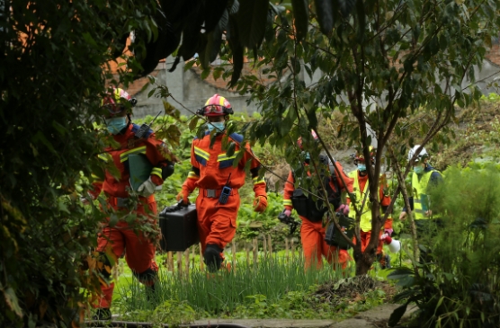 演練中,參演隊(duì)伍全要素、全流程地模擬指揮部搭建、災(zāi)情接報、會商研判、人員搜救安置、滑坡崩塌處置等過程,包含了次生地質(zhì)災(zāi)害處置全過程。