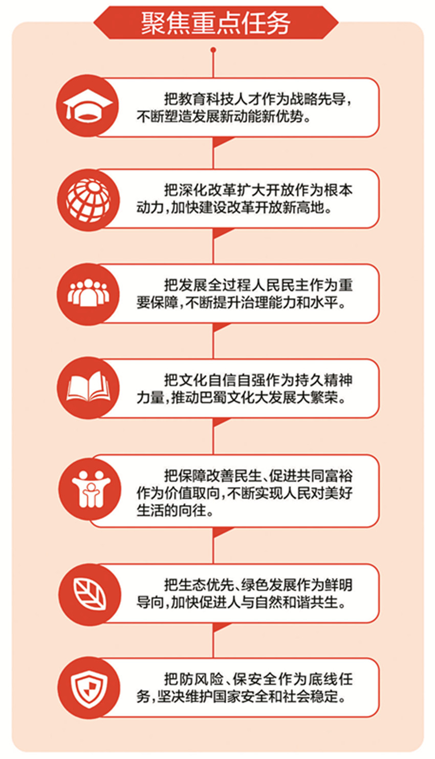 全會文件中的一些表述令人豁然開朗:全面建設(shè)社會主義現(xiàn)代化四川,是新時代治蜀興川的總目標(biāo)總?cè)蝿?wù);要以成渝地區(qū)雙城經(jīng)濟(jì)圈建設(shè)為總牽引,以“四化同步、城鄉(xiāng)融合、五區(qū)共興”為總抓手,堅持“講政治、抓發(fā)展、惠民生、保安全”工作總思路,在新的征程上奮力譜寫四川發(fā)展新篇章。