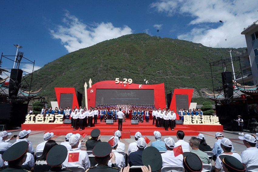跨越時(shí)空“唱和”不朽的世紀(jì)贊歌,沉浸式禮贊澎湃的紅色記憶。5月29日,備受期待的瀘定縣“5·29”群眾文化惠民活動(dòng)暨大型合唱展演在瀘定橋廣場(chǎng)舉行。來自縣級(jí)各系統(tǒng)各鄉(xiāng)鎮(zhèn)的14支合唱代表隊(duì)1500余名黨員干部、群眾登臺(tái)獻(xiàn)唱,唱響紀(jì)念紅軍飛奪瀘定橋勝利88周年的新時(shí)代“永恒贊歌”,一幅“聲”情告白黨和國家的音樂長(zhǎng)卷在瀘定橋邊徐徐鋪展,8萬兒女用堅(jiān)定的歷史自覺和文化自信抒發(fā)愛黨愛國愛“紅色瀘定·康養(yǎng)福地”的款款深情。