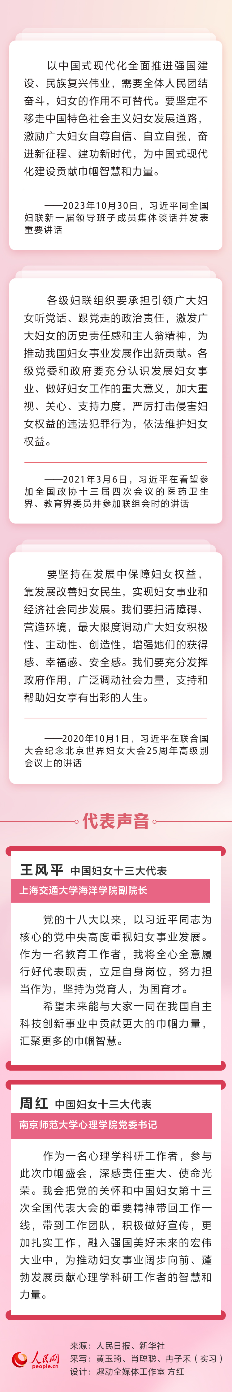 黨的十八大以來,以習(xí)近平同志為核心的黨中央從黨和國家事業(yè)發(fā)展全局出發(fā),高度重視和積極推進婦女工作,加強黨對婦女工作的領(lǐng)導(dǎo),堅持中國特色社會主義婦女發(fā)展道路,部署婦聯(lián)改革任務(wù),發(fā)揮婦女在各個方面的積極作用,推動我國婦女事業(yè)取得歷史性成就。人民網(wǎng)帶您重溫習(xí)近平總書記重要論述并邀請中國婦女十三大代表解讀。